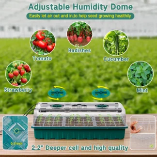 Seed starter tray with grow light, 2-piece 72-compartment nursery tray set, adjustable brightness plant germination tray.