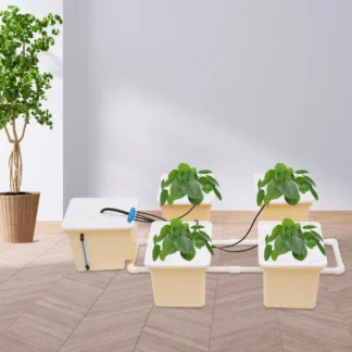 4 Bucket DWC Hydroponic System Kit with 4W 300L/H Submersible Pump 11L Capacity Each for Vegetables Fruits Flowers Hydroponics