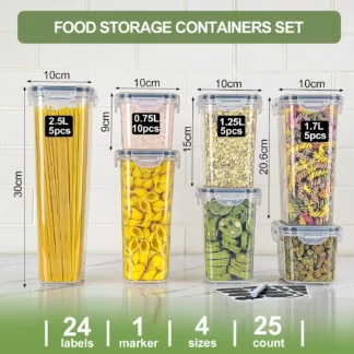 25pcs Airtight Kitchen Grain Storage Organizer Food Jars Household Large Tank Plastic Moisture-resistant Storage Box Spice Jars