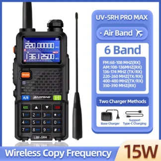 Baofeng walkie talkie UV5RH 15W, six band wireless replication frequency, 999CH, USB transceiver, HAM, , 50KM