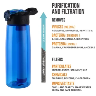 750ML Outdoor Water Filter Straw Bottle/Cup for Survival or Emergency Supplies Purification Water Purifier Drinking Water Bottle