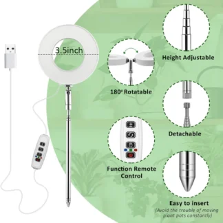 Full Spectrum Fill Light LED Grow Lamp with Adjustable Height, 3/9/12H Timer 10-Level Dimming for Indoor Solar Plants Garden