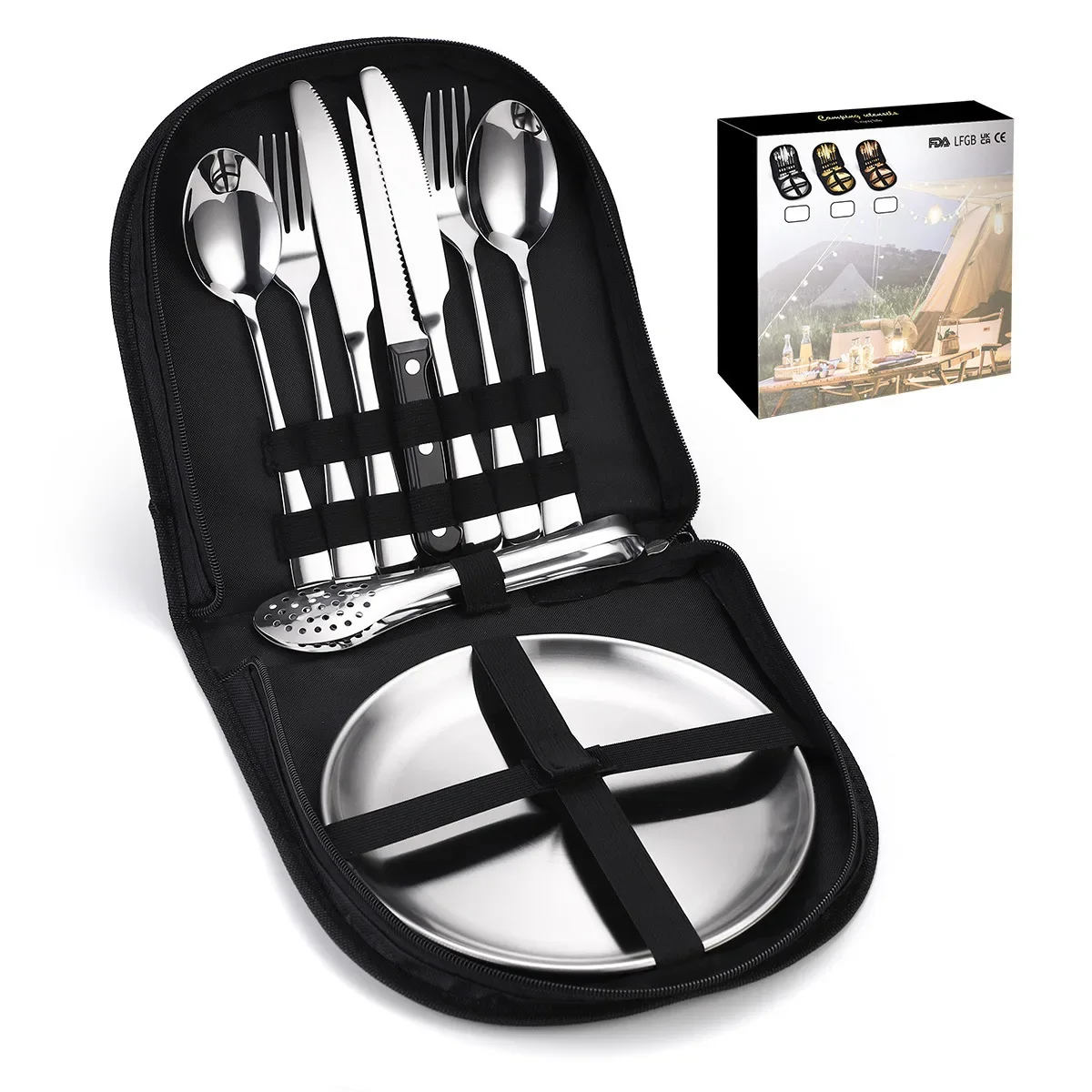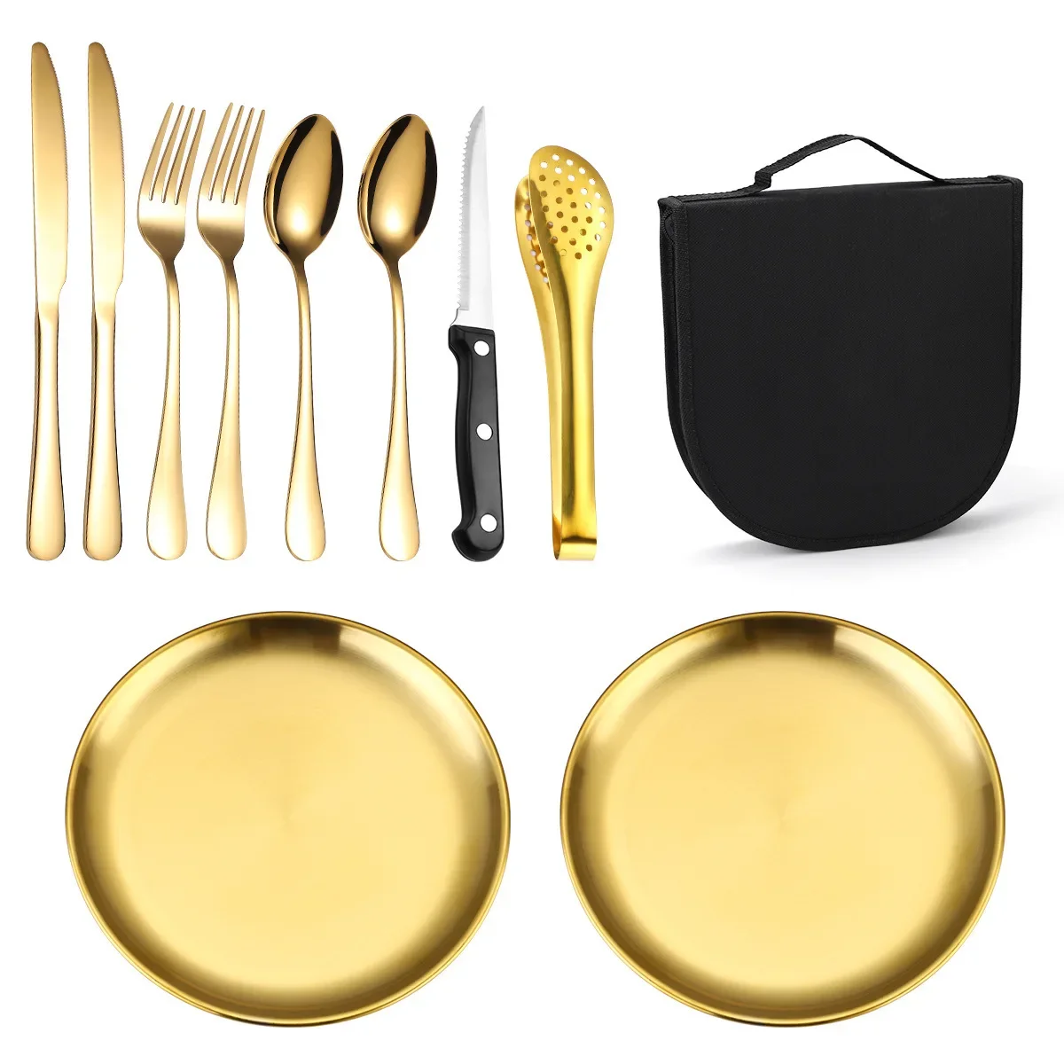 10/20 Piece Stainless Steel Outdoor Cutlery Set Storage Utensils Picnic Portable Set Stainless Steel Plates
