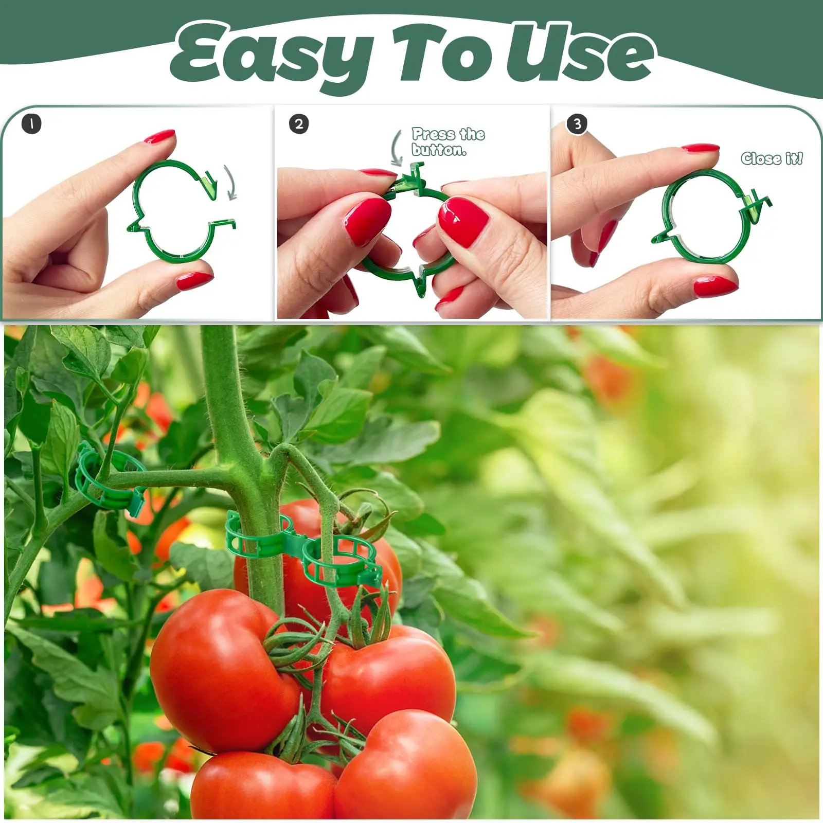 Premium material: the tomato clips are made of quality plastic, simple structure, lightweight and reusable, smooth surface without burr, weather resistant, not easy to break or crack, and the joints can be folded repeatedly, they can serve you for a long time.