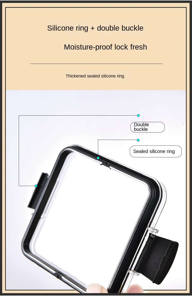 1. Thick sealing silicone ring + double buckle, cool moisture-proof closure;