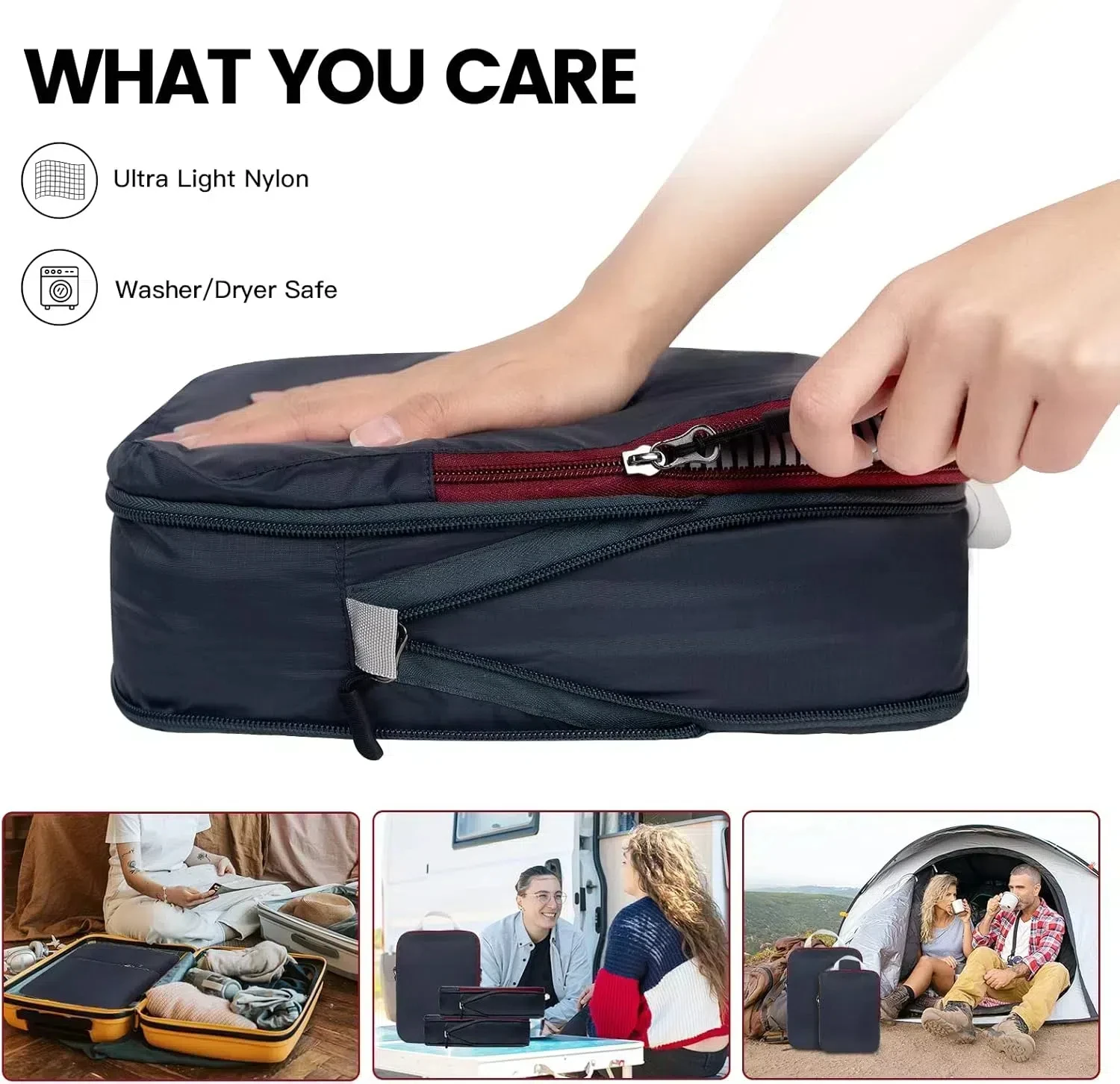 Keep Everything Organized, Say Goodbye to a Messy Suitcase! This space-saving packing cube features a compression zipper that enables you to compact your clothing, maximizing luggage space while keeping your garments neatly organized and readily accessible.Packing in different scenarios.