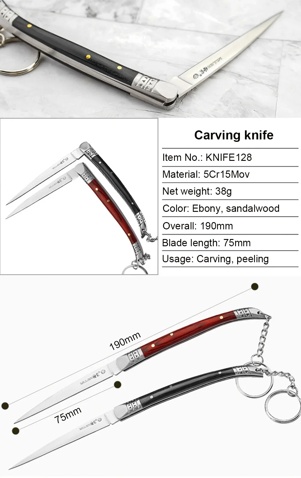 Uses: Food carving, Peeling, Fruit knife, outdoor camping