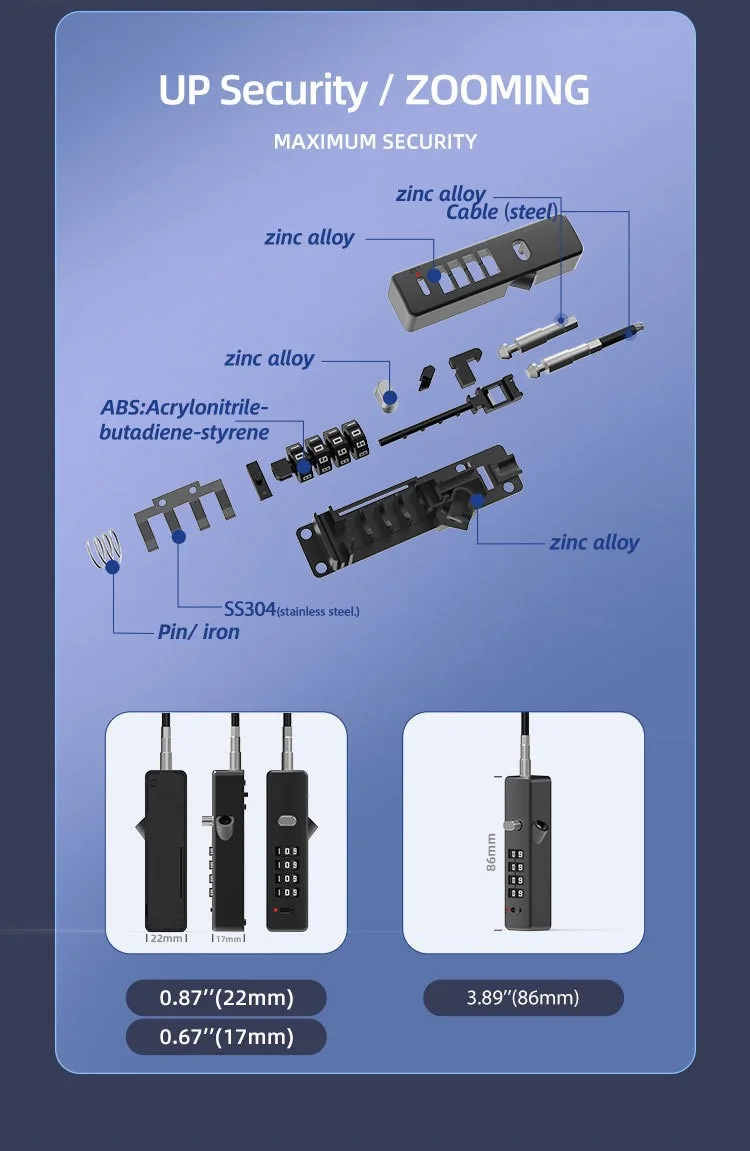 This lock is versatile, suitable for securing bikes, cabinets, wardrobes, and fences, providing comprehensive protection.