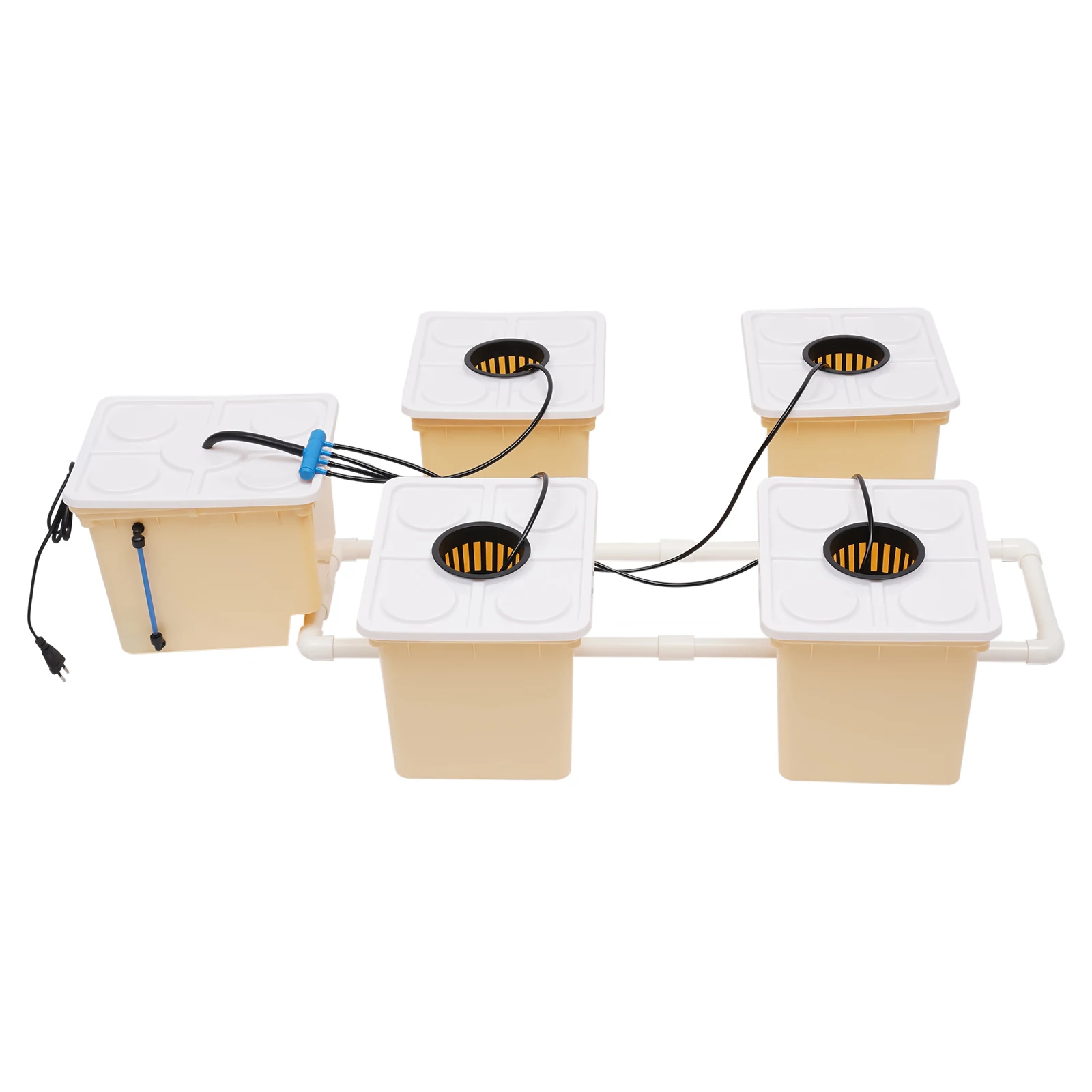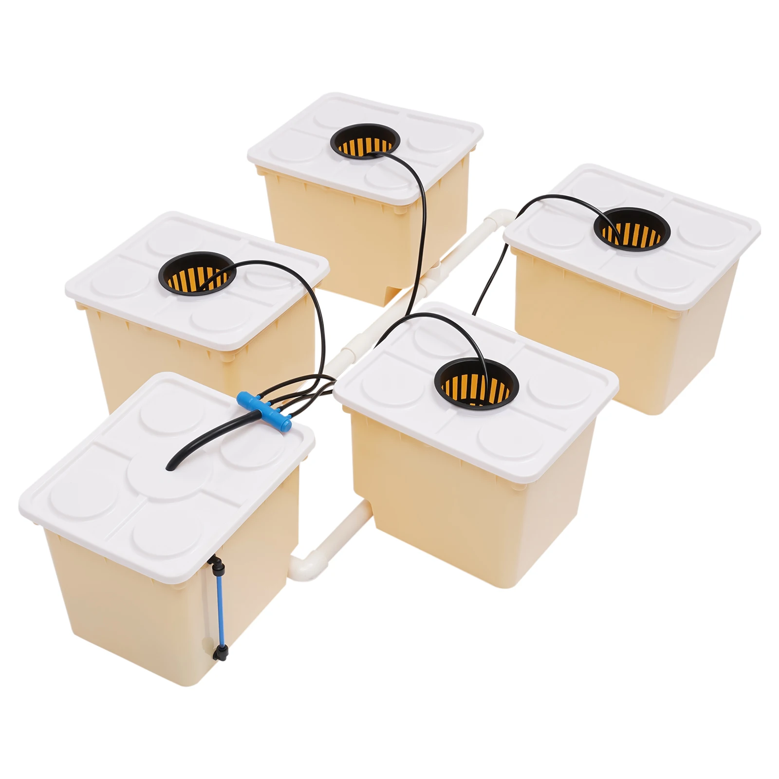 Unique Design: In this system, water and nutrient solution are rapidly delivered to each bucket via a 4W submersible pump and piping at a flow rate of up to 79.25 gallons per hour, which allows plant roots to be fully immersed in nutrient-rich, highly oxidized water, avoiding the disadvantages of poor soil and inclement weather, achieving better plant growth.