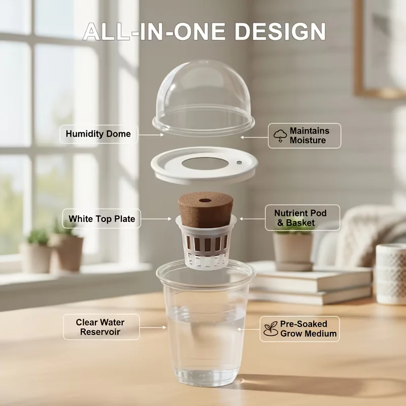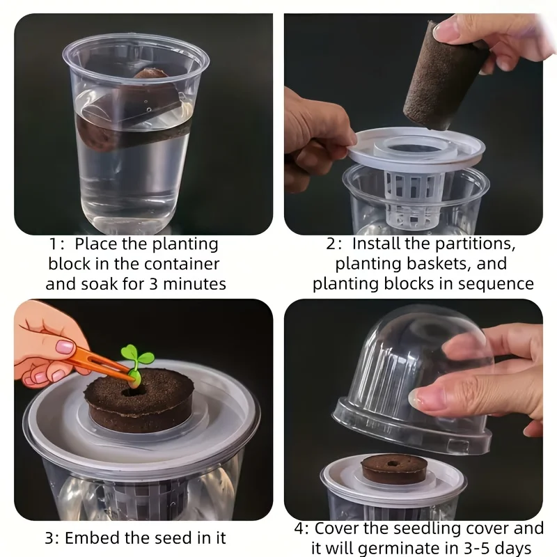 –Practical Seedling Baskets for Stable Growth: Equipped with dedicated seedling baskets, the set securely holds plants in place during the hydroponic process. The baskets keep the base of succulents, garlic or vegetable seedlings stable, preventing them from toppling over while also allowing roots to freely extend into the water, promoting efficient nutrient absorption.