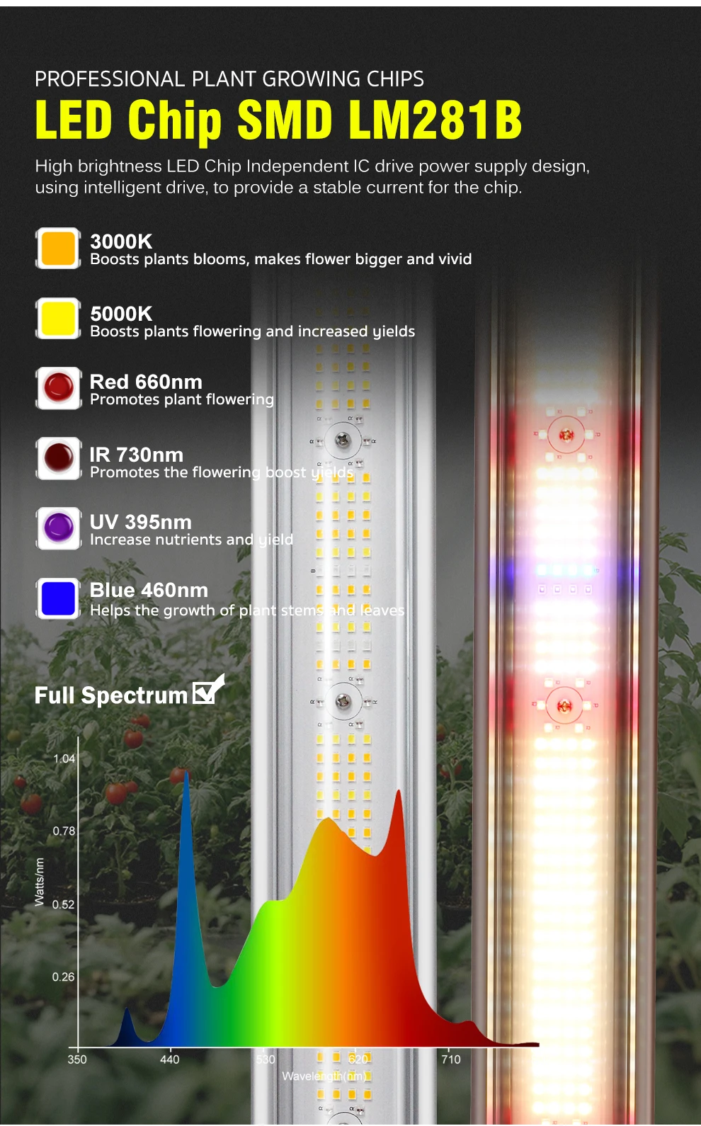With high-efficiency LED chips, high-quality drive power supply for higher PAR output, the grow light can accelerate
