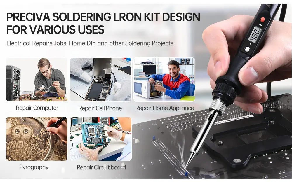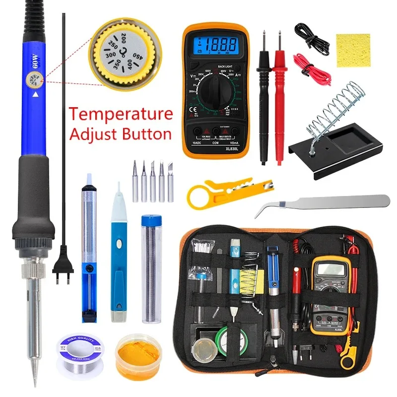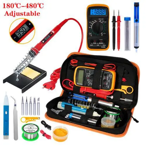 80WDigital Display Adjustable Temperature Electric Soldering Iron Tool Kit Multimeter Set Repair Welding Repair Tools