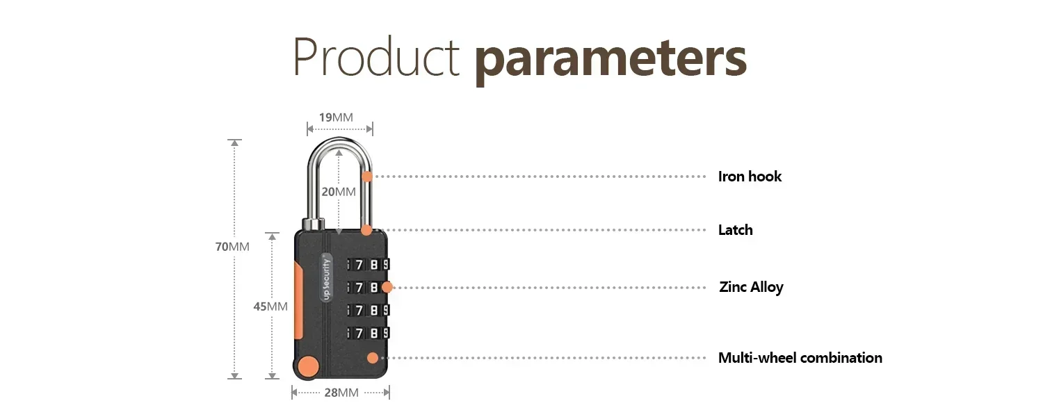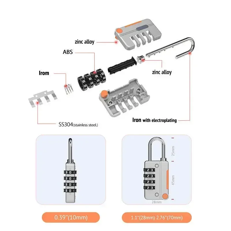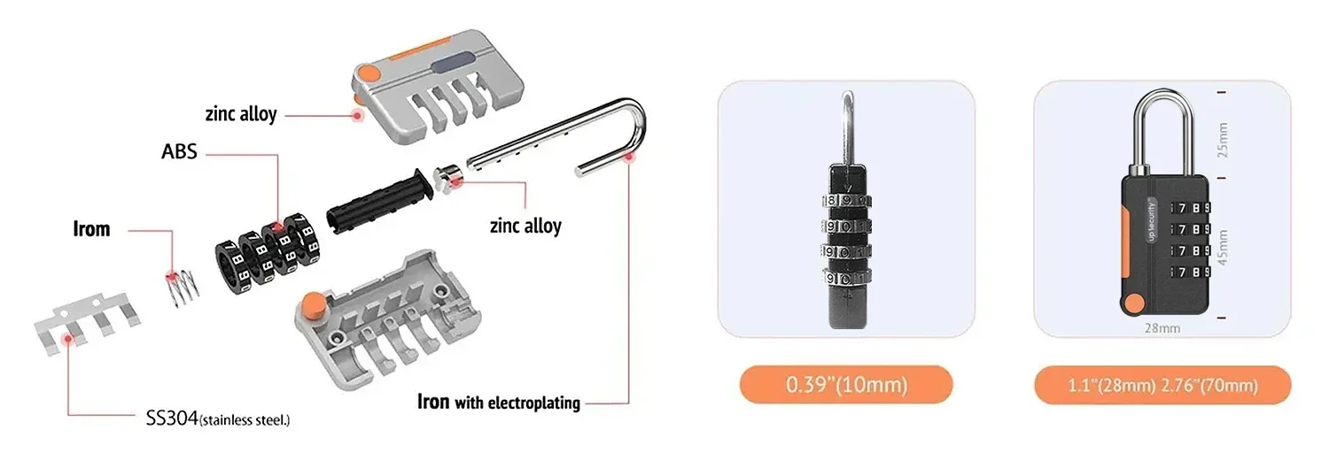 – Security:4-digitre-settablecombination padlock, harder to crack.