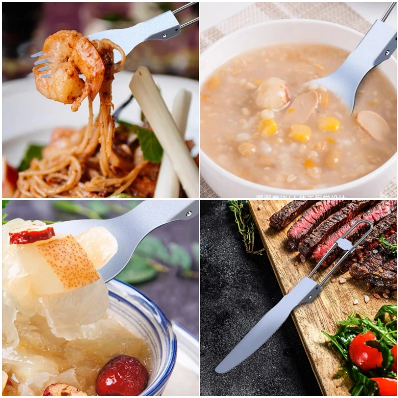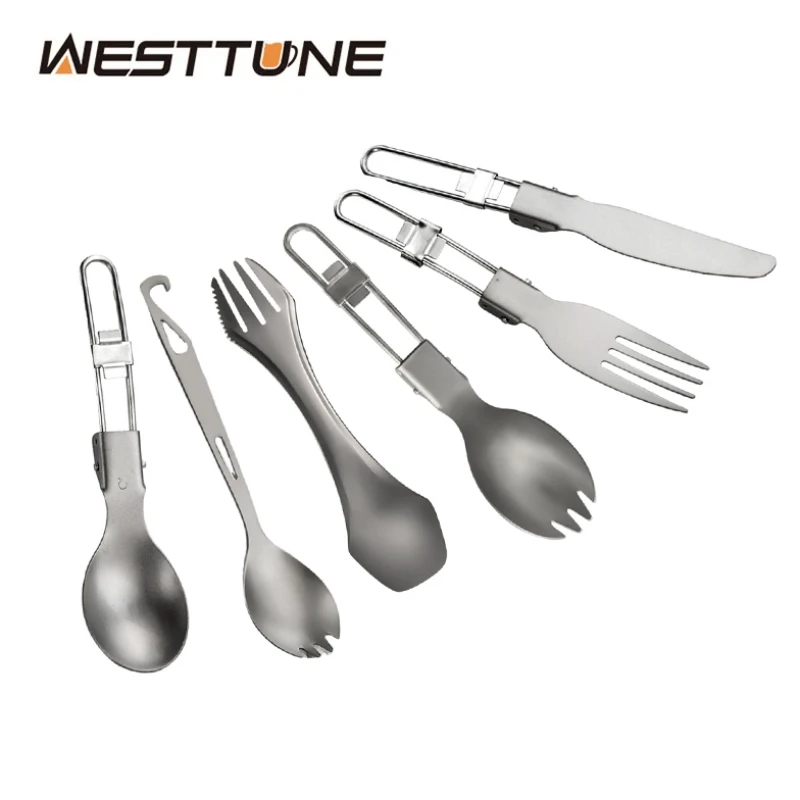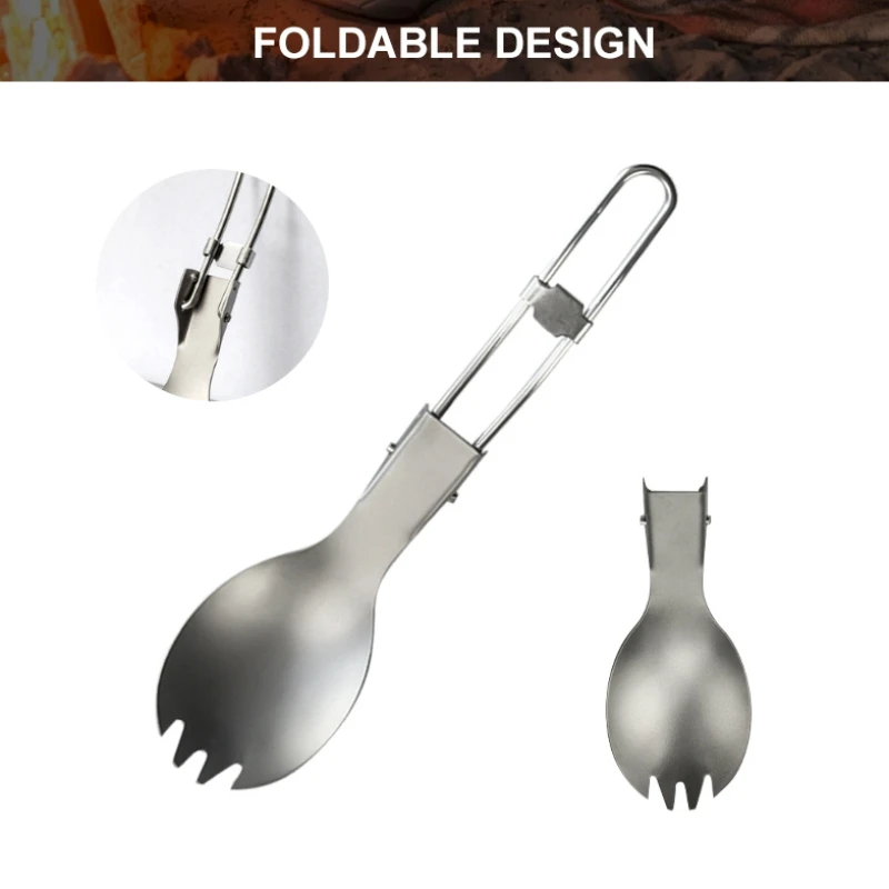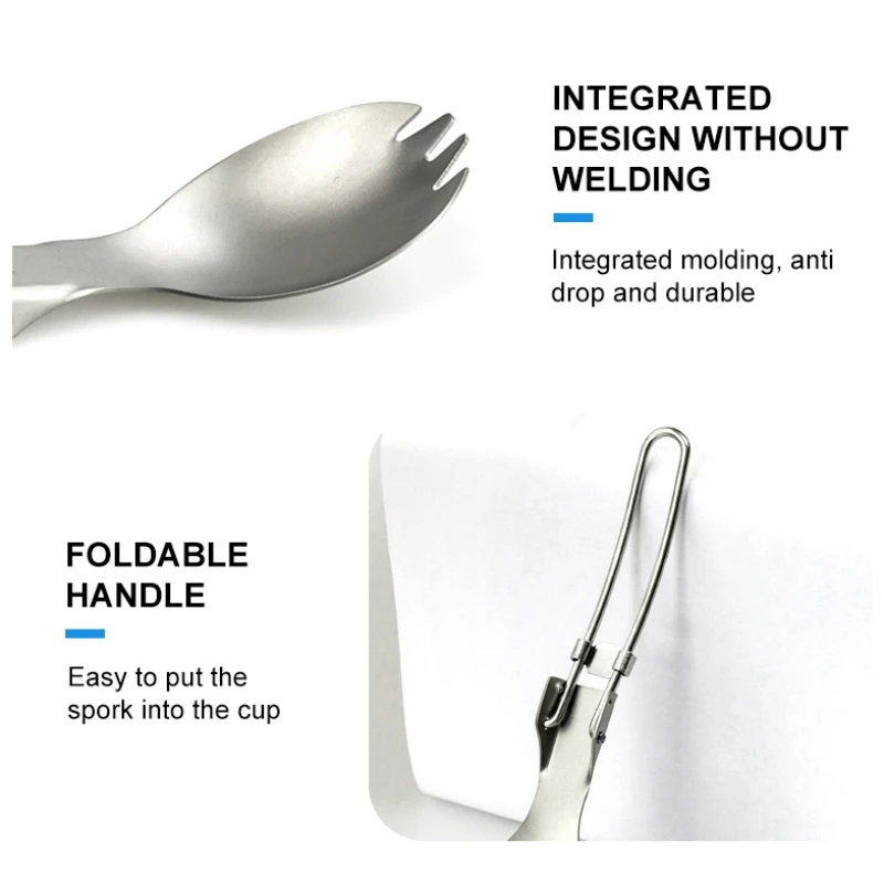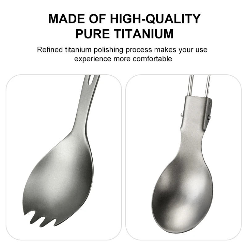 Camping Folding Cutlery Titanium Spoon Spork Fork Knife Outdoor Tableware Ultralight Camping Cookware Hiking Travel Flatware Set