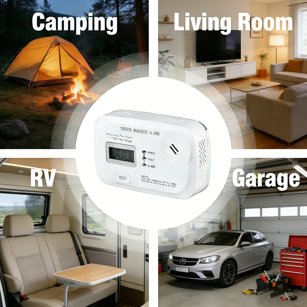 Install anywhere CO may leak: fireplaces, garages, living rooms, bedrooms, kitchens, RVs, trucks, etc. All-round protection for home, workshop and travel.