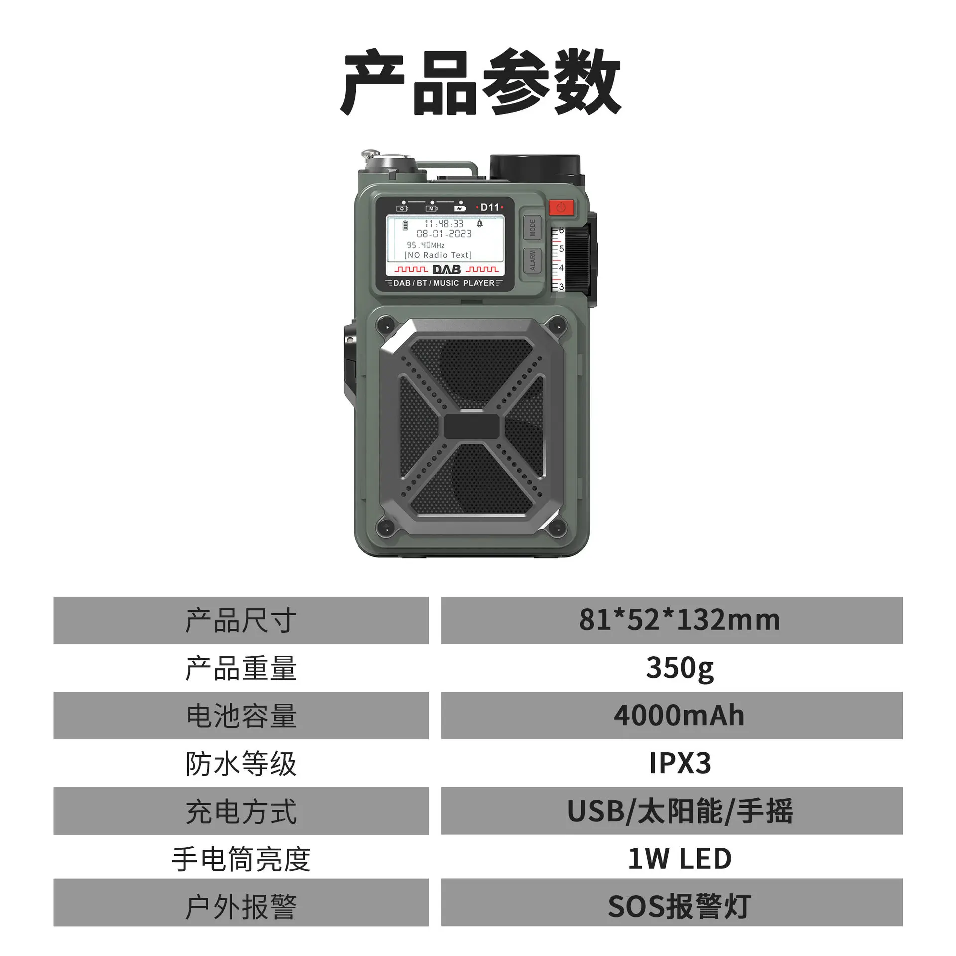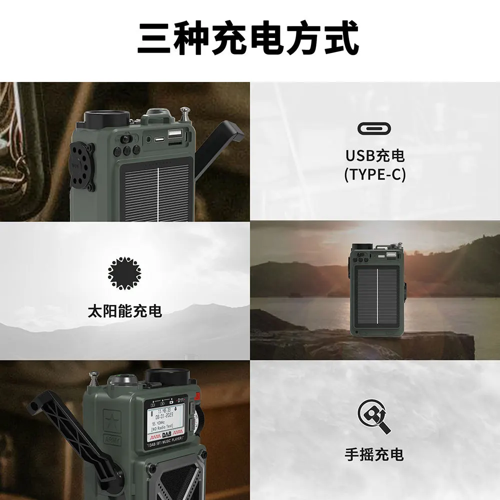 DAB Combat Readiness Radio Emergency Radio Bluetooth Speaker FM Hand Crank Solar Radio