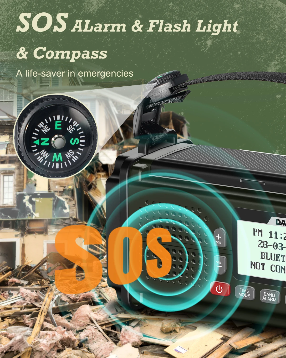 Portable for Outdoors & Compass: This kind of emergency radio is born for outdoors. Of course, it has a portable size (size: 6.7 x 2.9 x 3.6in, weight: 1.3lb) , easily slip into your backpack without taking up much space. Plus, comes with a wrist strap, you can adjust the length or secure the radio onto your backpack for outdoor activities. Extra compass attached to strap is very helpful to show you orientation when you get lost outside.