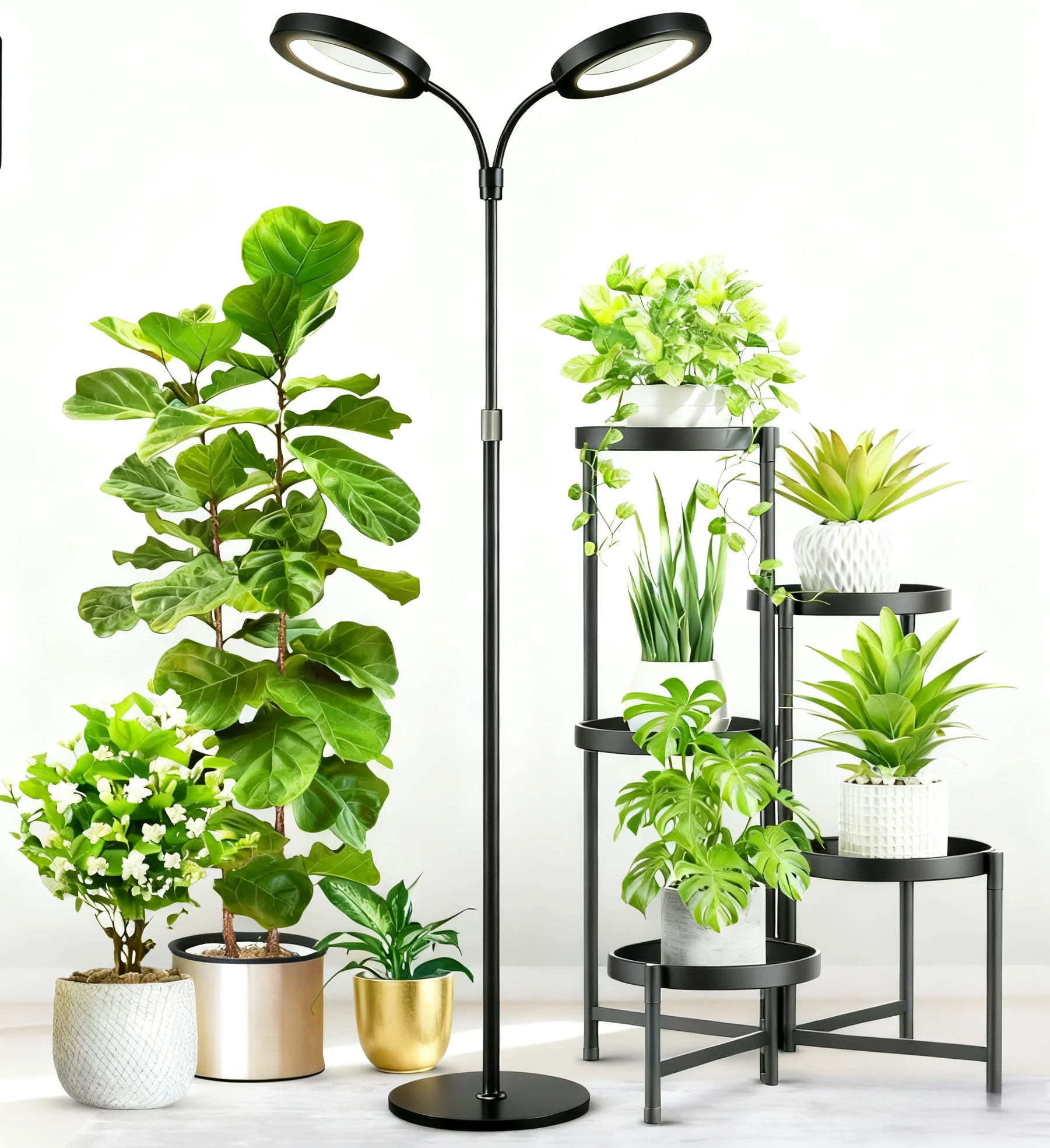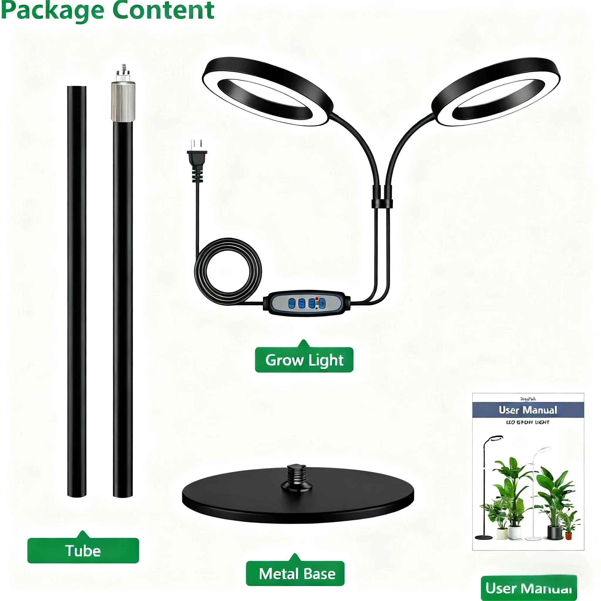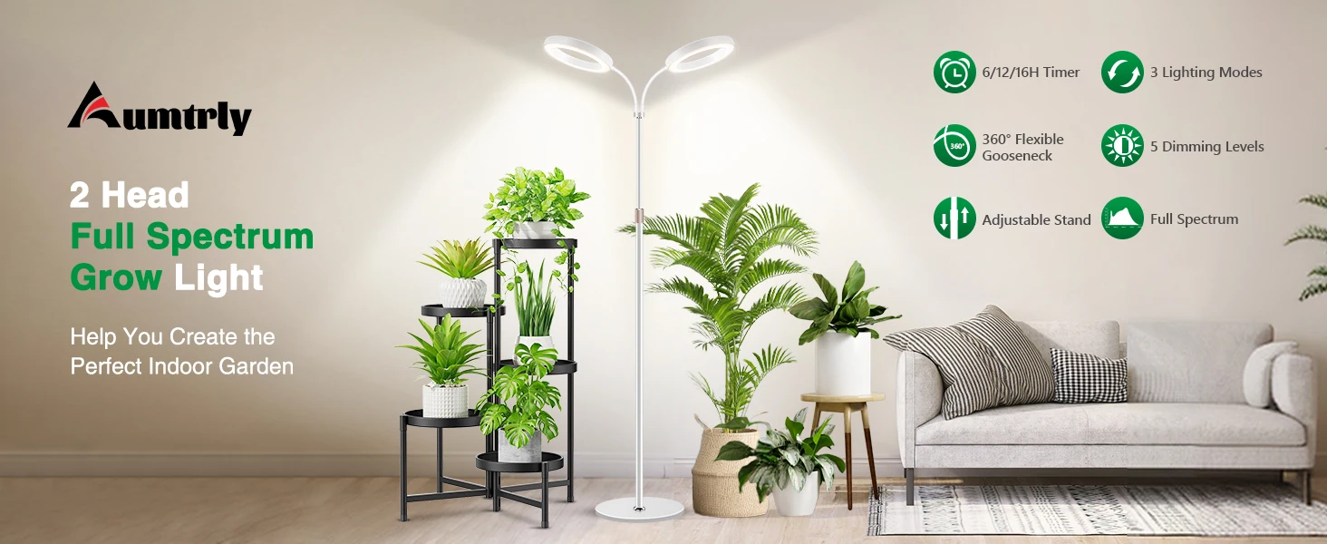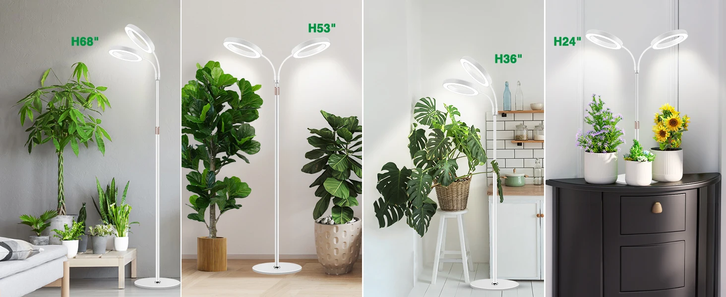 【Adjustable Height & Flexible Gooseneck】Customize your lighting setup effortlessly. The stand features a 3-section detachable aluminum pole, offering 3 height options (47/63inchs) to perfectly cover plants of all sizes.Combined with the adjustable gooseneck, you can direct light precisely to every leaf, ensuring no plant is left in the shadow.