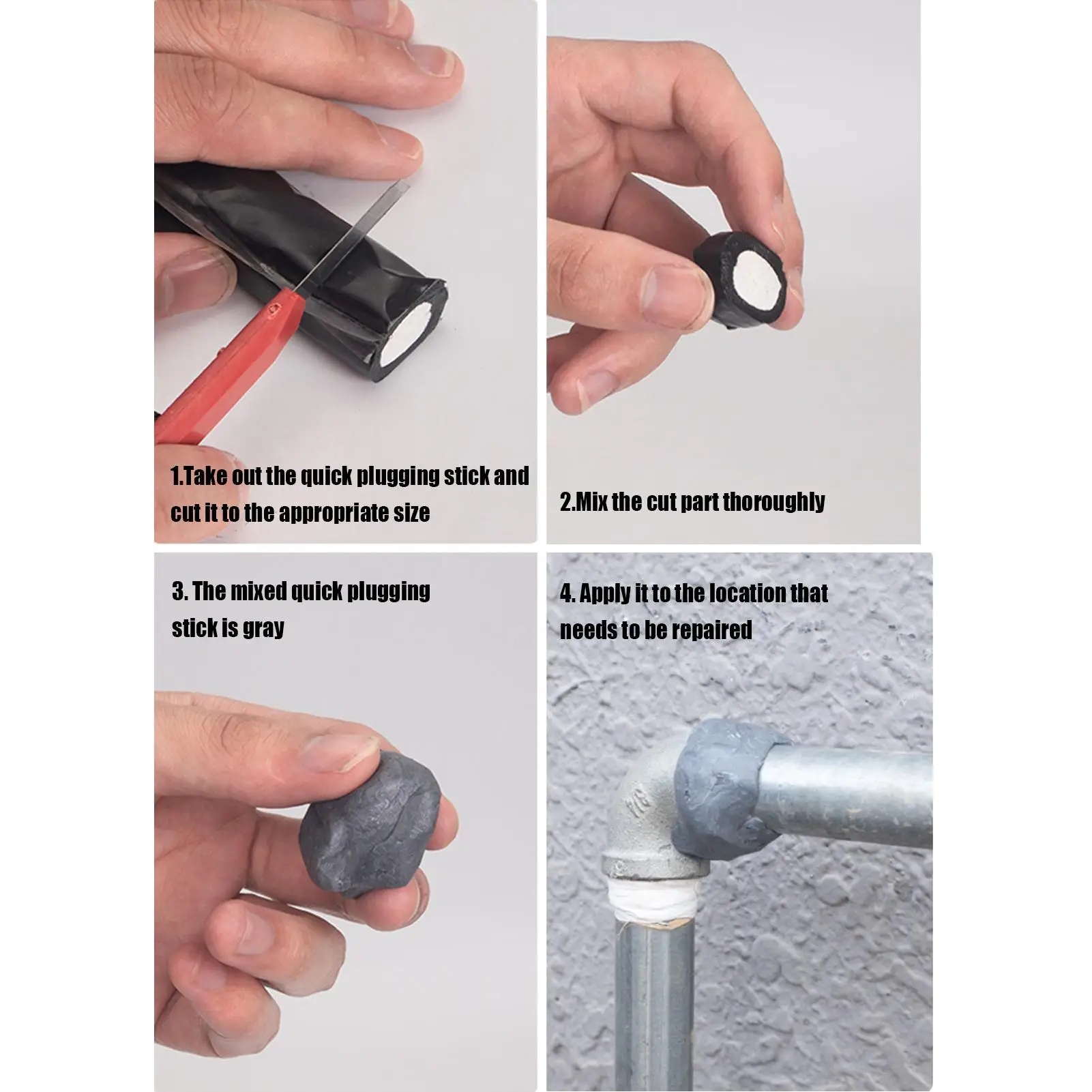 1.Versatile Shaping: Can be easily shaped into any form, this putty stick has a soft texture that adapts to different repair needs. Its pliable consistency ensures a perfect fit as it can be kneaded into various shapes effortlessly.