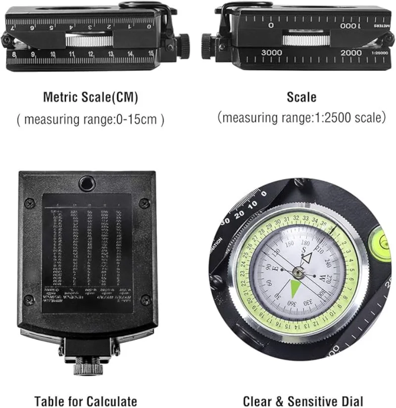 🔹EASY TO HANDLE & READ – A liquid-filled compass with an integrated bubble level, it delivers reliable and accurate readings, thanks to the luminous dial, adjustable luminous marching line, thumb hold and magnifying viewer, you can get a fast and easy read.