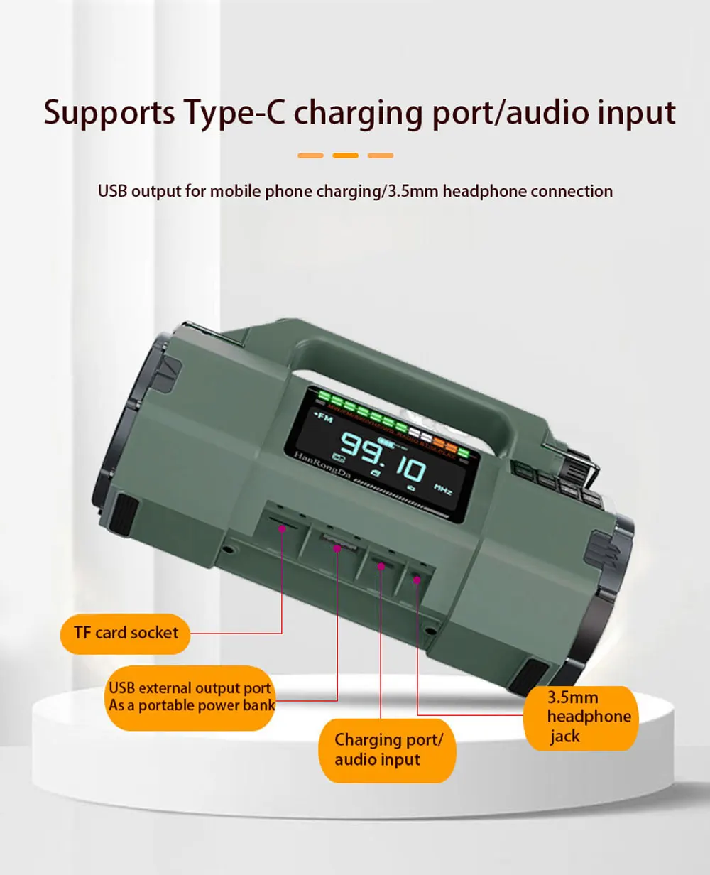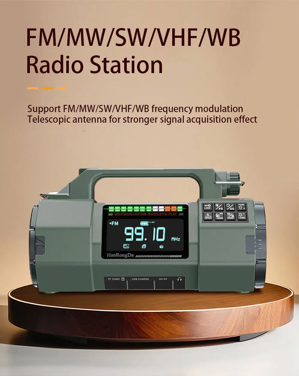 Support FM/MW/SW/HF/WB frequency modulationTelescopic antenna for stronger signal acquisition effect