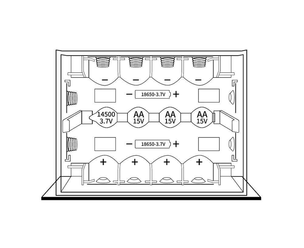 14500 lithium battery: 3.7v 1000mAh x 1 cell、AA (No. 5) battery. 1.5V x 3 cells