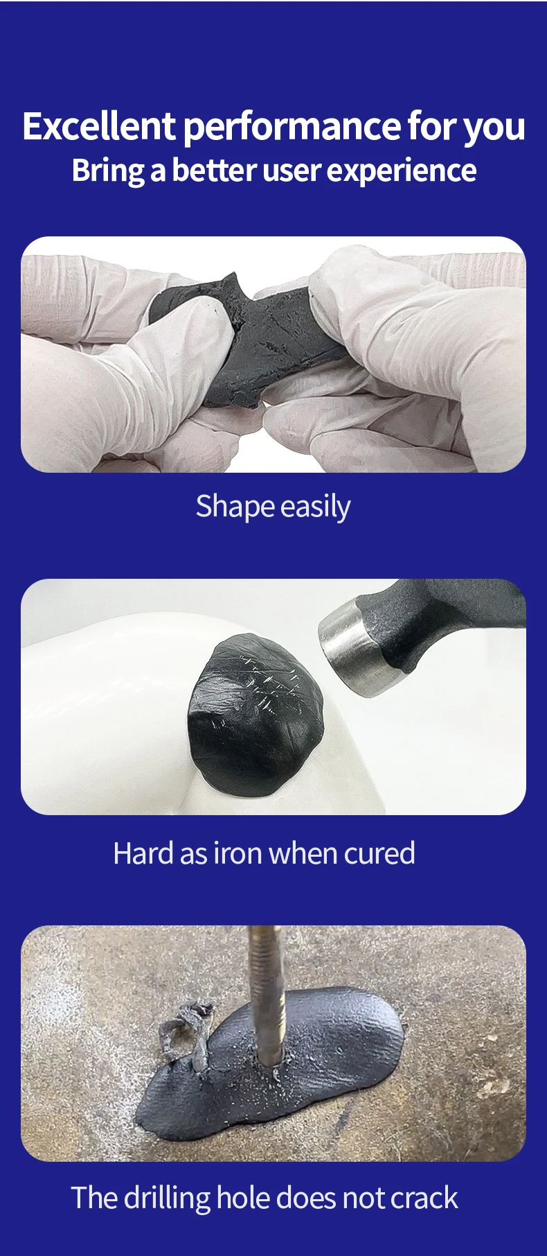 Moldable Epoxy Putty Repair Stick Glue for Crack Damage Fixing Multi-Purpose Fast Permanent Repair Special Adhesive for Metal