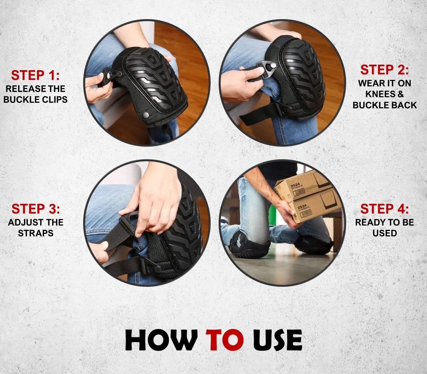 STAYS IN PLACE: Our heavy-duty knee pads, cushioned with soft EVA foam, feature double straps that firmly hold them in place without slipping. Adjustable clips allow easy wear and removal while enabling you to customize the pads' height and snugness