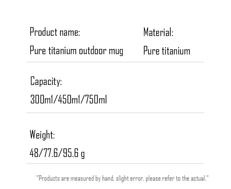 (1) Product name: pure titanium outdoor mug