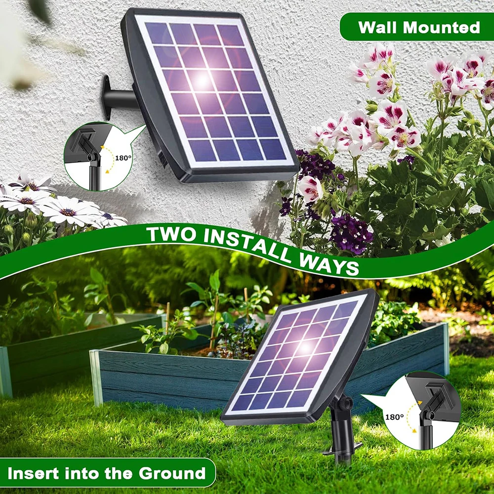 Indoor & Outdoor Application: The water irrigation system is waterproof and sunlight resistance material. It can be used both indoors and outdoors. Fix the product in a position where the solar panel can be exposed to direct sunlight and the side with the switch button must be faced down. The product can be inserted into the soil by using the ground stake or be fixed with screws on the wall, fence, etc.