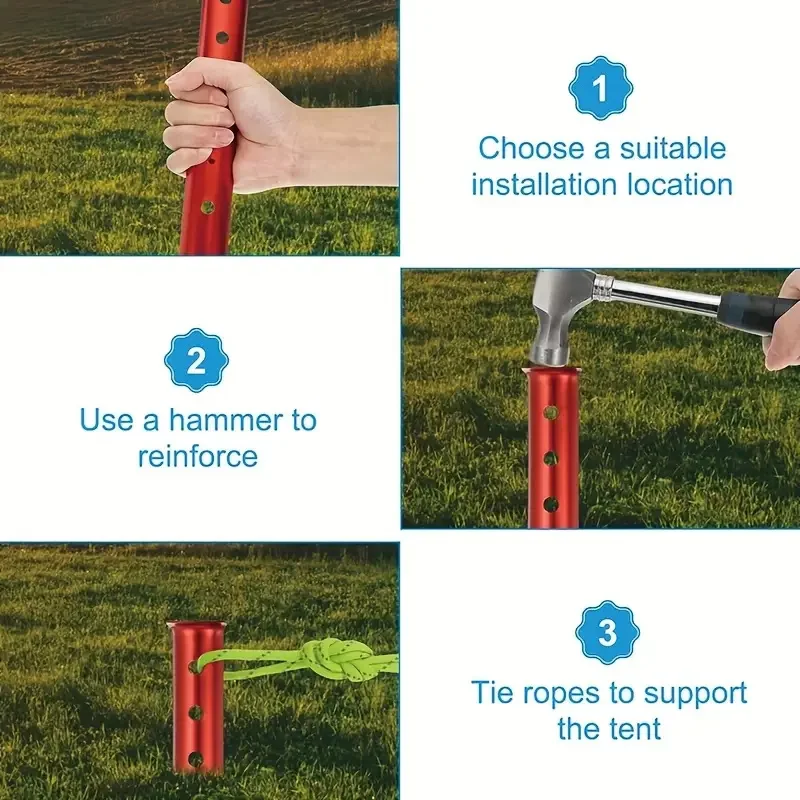 ✅ Easy to Use and Adjustable: Featuring six holes for adjustable rigging options, these metal ground stakes allow for secure rope placement to prevent slipping.