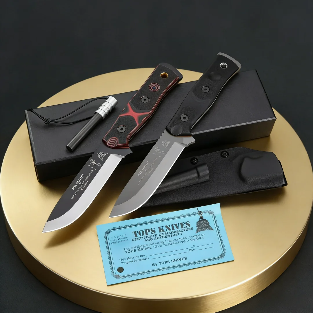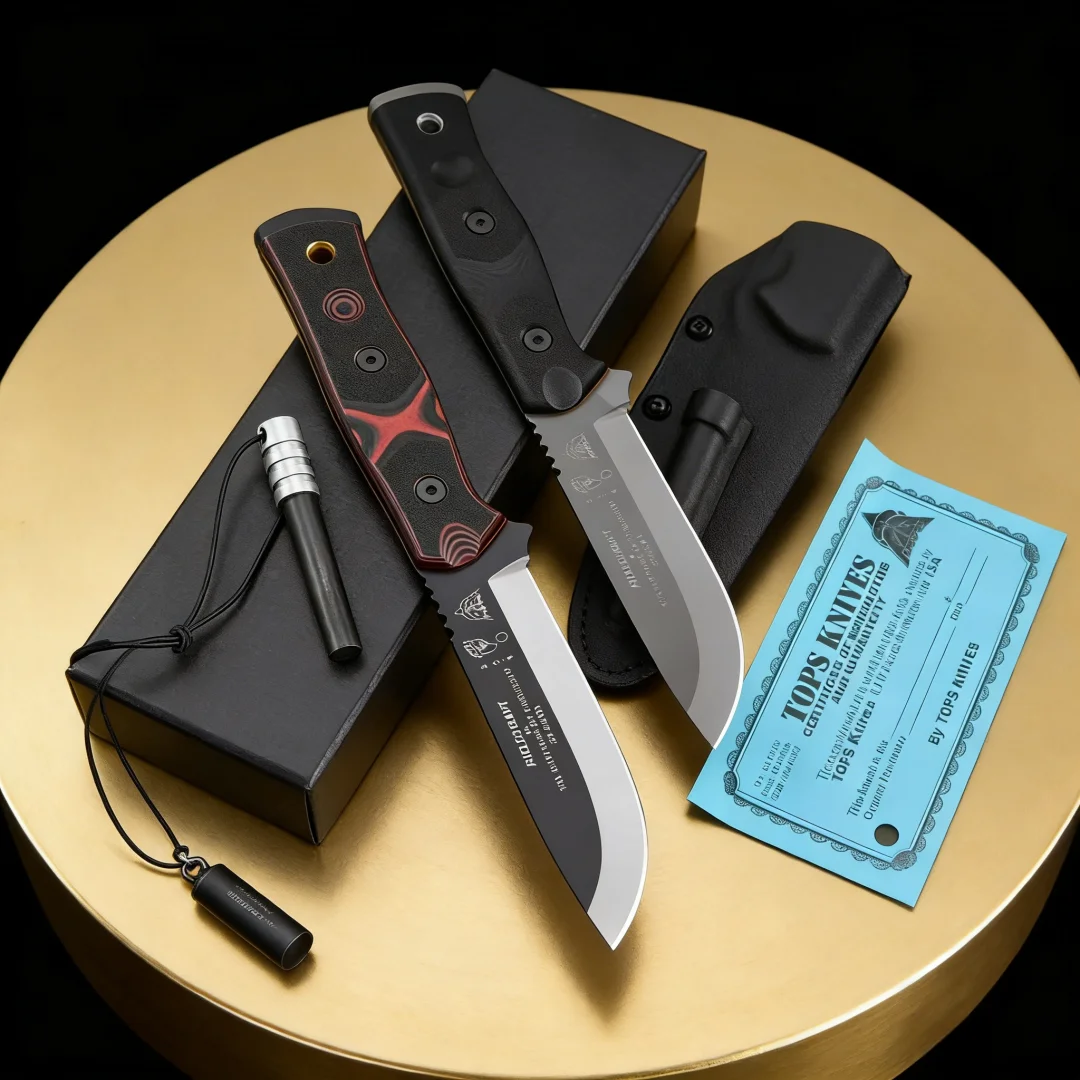 TOPS- Camping Adventure Straight knife 154CM alloy steel, integrated keel structure, dual-color G10 handle, hiking survivalknife
