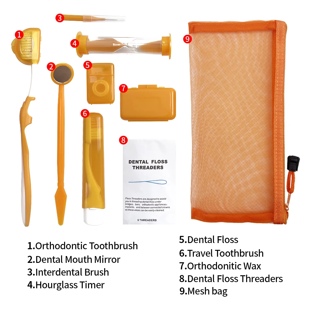 Travel Orthodontic Oral Care Kit Foldable Toothbrush Interdental Brushes Dental Mouth Mirror Floss Ortho Wax Teeth cleaning Sets