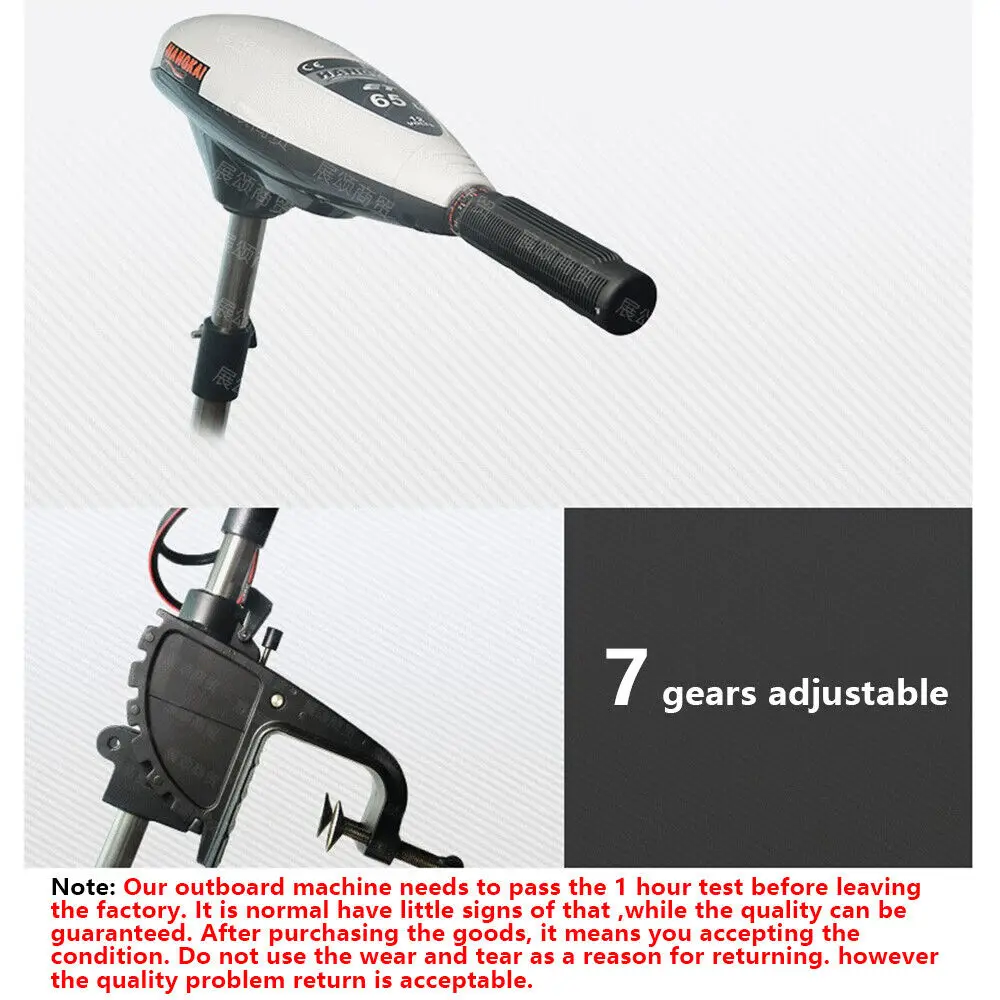 2.The machine itself is lightweight, it can use on boat weight of 100kg or less , load-bearing 4 people, but the speed is certainly not the same whenone person on it or 4 people on it . Customer who has high expectations on speed, please be noticed.