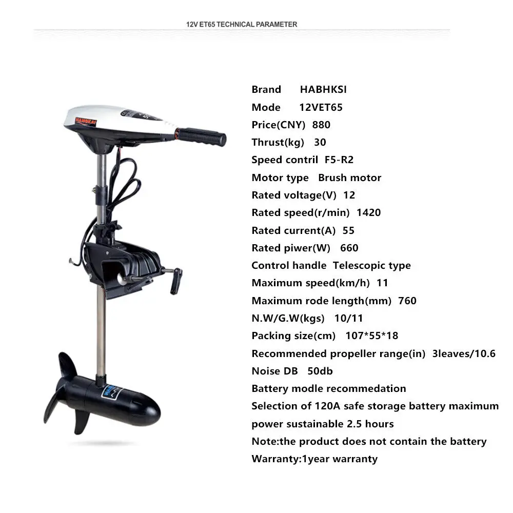 Powerful 12V 660W Electric Marine Propeller Seawater Outboard Motor 65LBS Thrust Fishing Boat Trolling Motor for Inflatable Boat