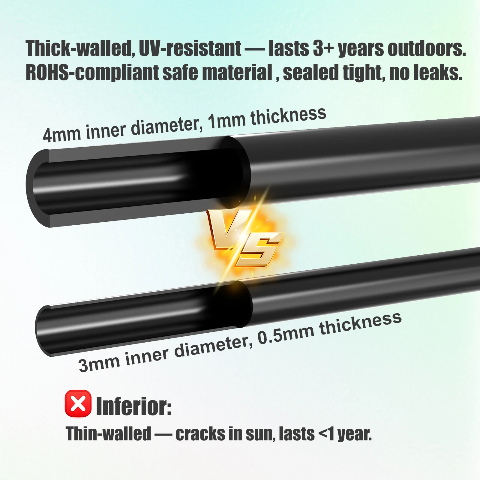 🌱 Upgraded performance: Better unti-UV surface material brings longer life. 2200 mAh large capacity build-in Li-on battery. 4/6mm Thicker water pipe.