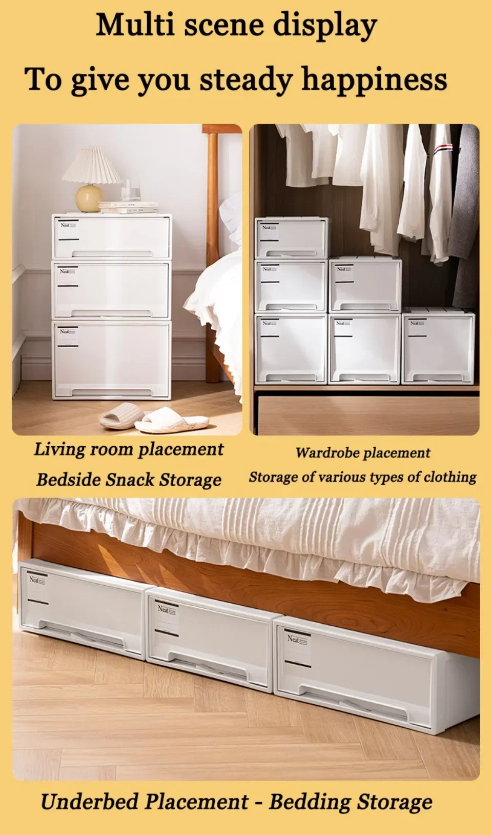 Storage scenarios: bedroom/wardrobe/living room/balcony/kitchen, etc
