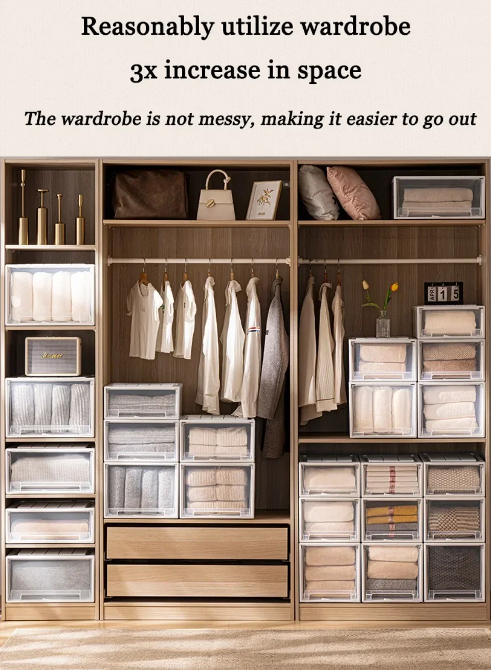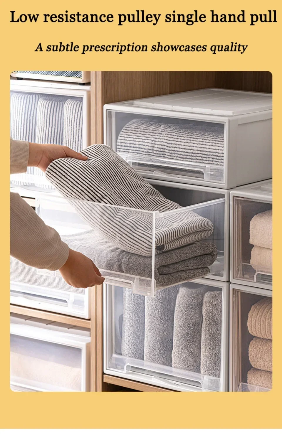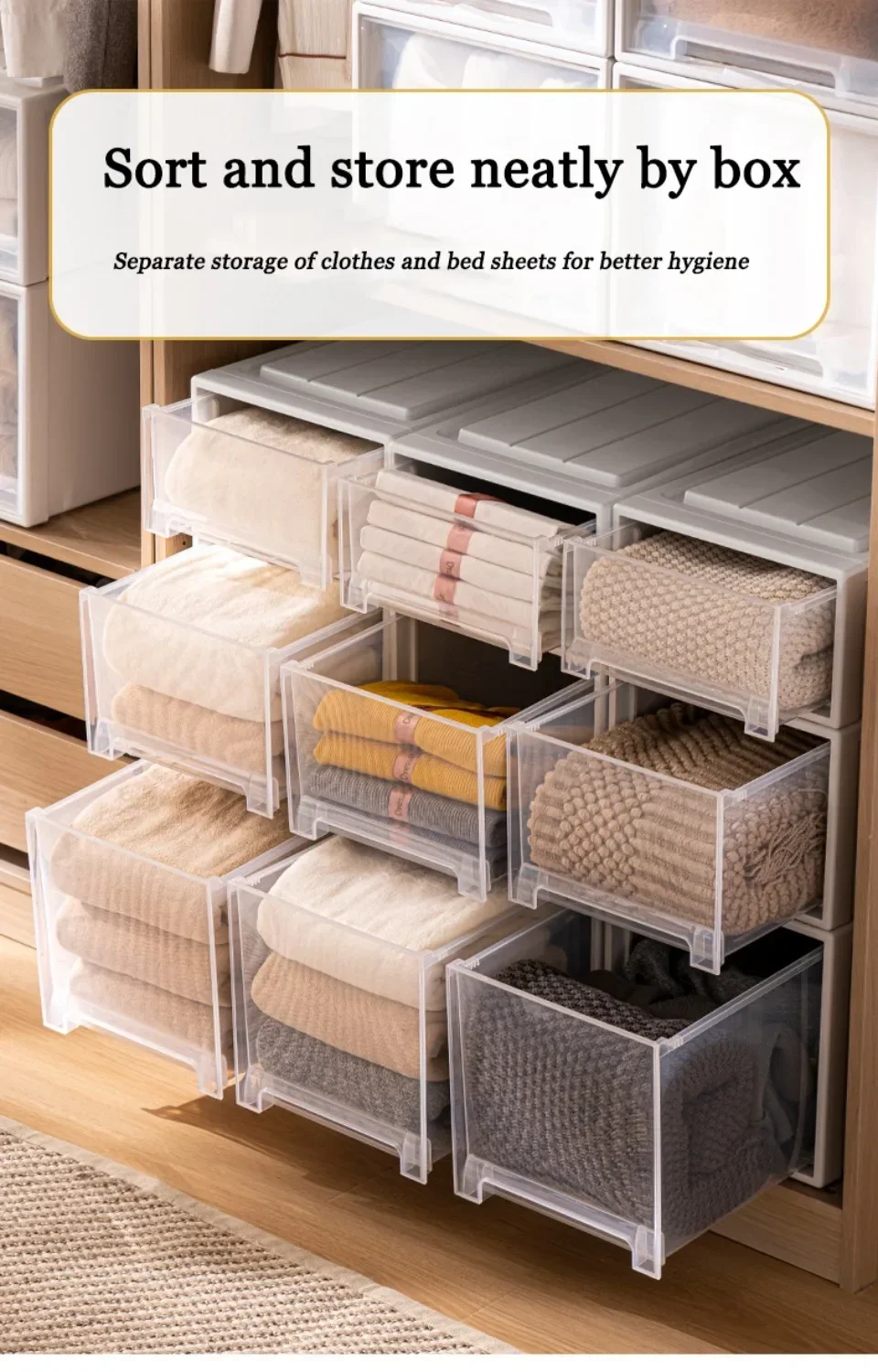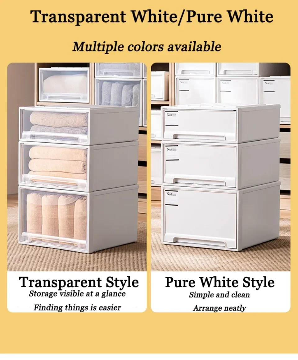 Wardrobe Storage Box high-capacity Drawer Style Stackable Container Transparent plastic containers for household use storage