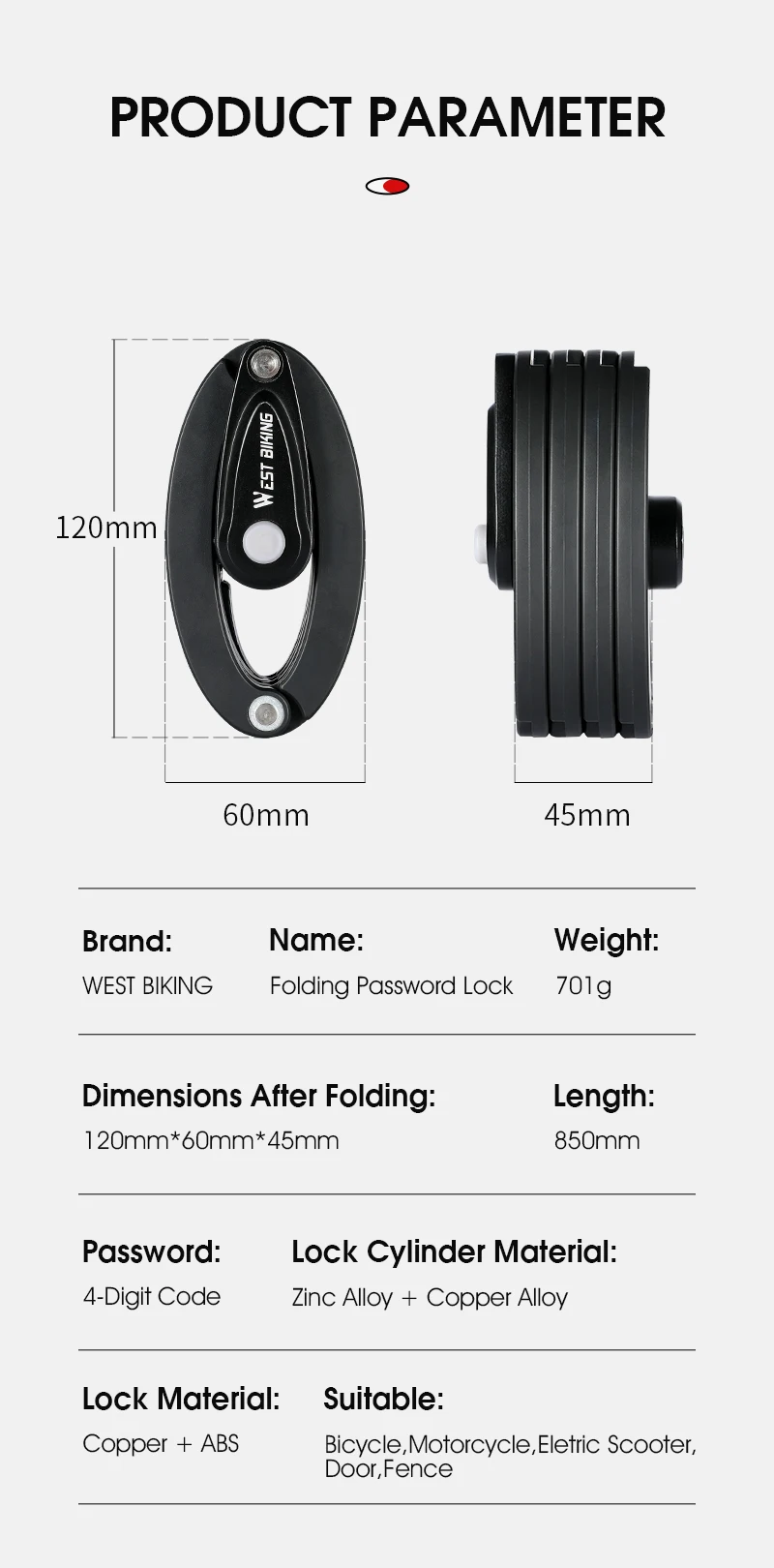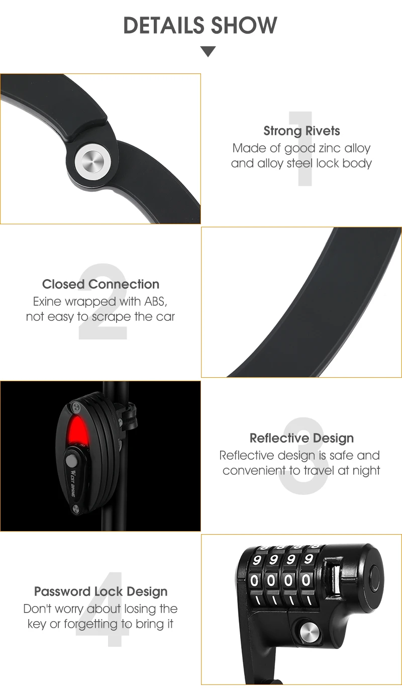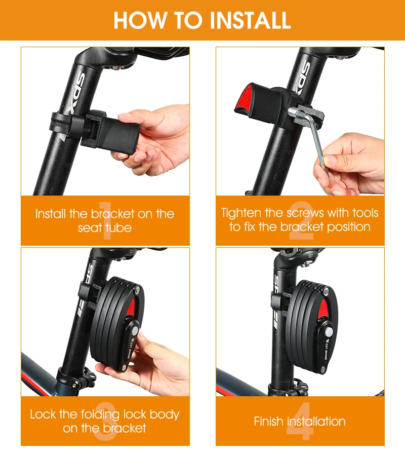 Suitable:Bicycle,Motorcycle,Electric Scooter,Door,Fence
