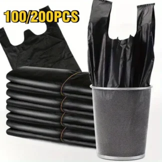 10/200PCS Black Disposable Garbage Bag Durable Handheld Vest Garbage Bag Kitchen Bedroom Toilet Household Storage Tool